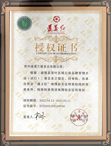 蘭馨茶業是“遵義紅”公用品牌授權企業及“遵義紅”五星級標識使用權企業。