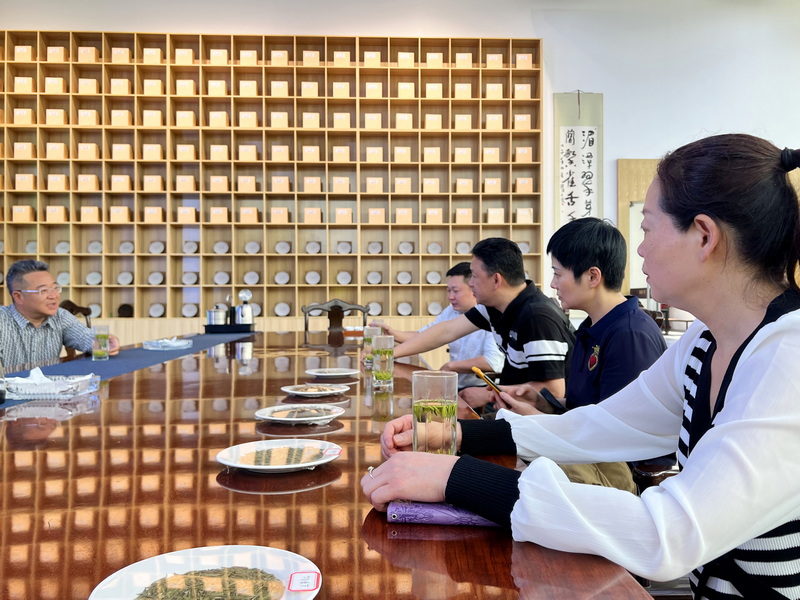 4月14日,遼寧(ning)客商(shang)一行深入公司精制車(che)間、包(bao)裝車(che)間、產品展示大廳實地參觀,并(bing)駐足(zu)手工(gong)制茶現場,品嘗現炒的手工(gong)茶。