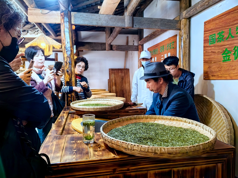 在莊園的手(shou)(shou)工(gong)制(zhi)茶(cha)(cha)(cha)坊(fang),一(yi)陣濃濃的茶(cha)(cha)(cha)香撲面而來。鐵(tie)鍋(guo)深(shen)灶,文火翻炒(chao),一(yi)顆(ke)顆(ke)茶(cha)(cha)(cha)芽在制(zhi)茶(cha)(cha)(cha)大師(shi)張澤旻的巧手(shou)(shou)中片片飛(fei)起,又(you)片片落下,頃(qing)刻間翻炒(chao)出一(yi)室茶(cha)(cha)(cha)香。看(kan)到如此有意思的畫面,韓國(guo)研學團(tuan)客(ke)人們(men)躍躍欲試,在制(zhi)茶(cha)(cha)(cha)師(shi)傅的指(zhi)導下,一(yi)一(yi)上手(shou)(shou)嘗試,親身體驗制(zhi)茶(cha)(cha)(cha)樂趣,感(gan)受傳統(tong)手(shou)(shou)工(gong)藝文化。