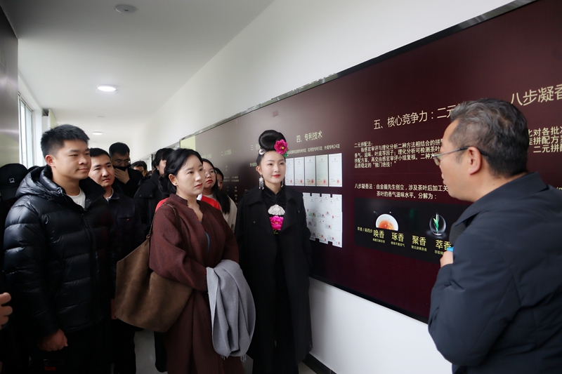 達人團隊一行40余人走(zou)進蘭馨茶(cha)業車間(jian)、圖片展廳、圣心茶(cha)酒展廳、倉播(bo)基地、產品展廳,參觀了(le)解(jie)茶(cha)葉生產流程和制(zhi)茶(cha)工藝、茶(cha)酒工藝。金循詳細(xi)介紹了(le)公司發(fa)展運營及茶(cha)葉直播(bo)電商情(qing)況。