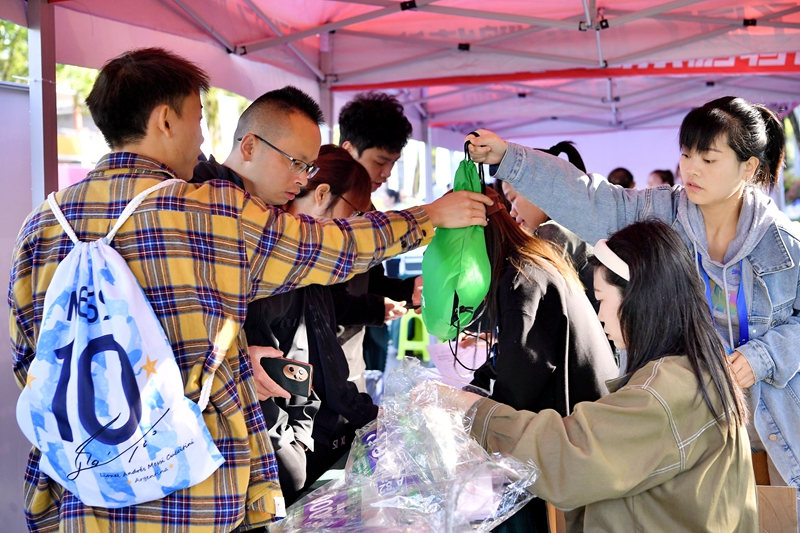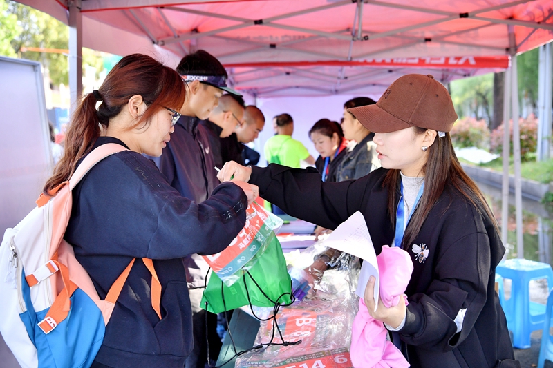比(bi)賽(sai)現(xian)場,蘭馨茶(cha)業職工(gong)為選手們(men)發放參賽(sai)物料